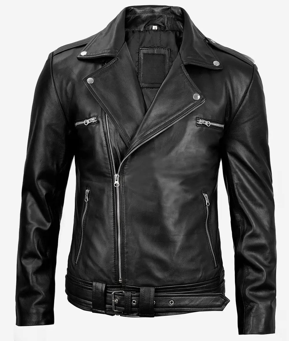 Men's Genuine Sheepskin Leather Biker Jacket – Asymmetrical Motorcycle Style, Slim Fit Tap into your...