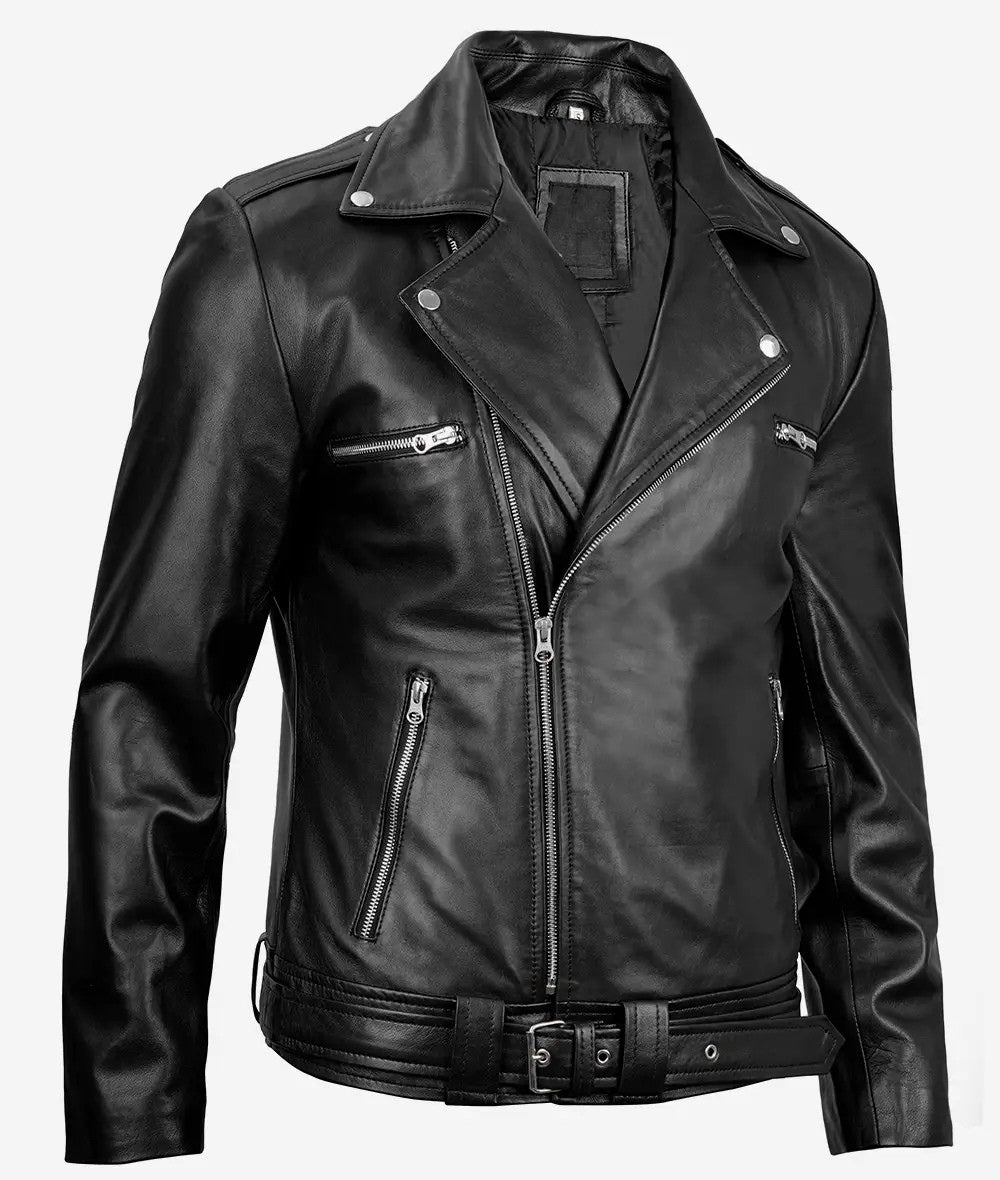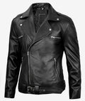 Mens Black Genuine Sheepskin Leather Biker Jacket